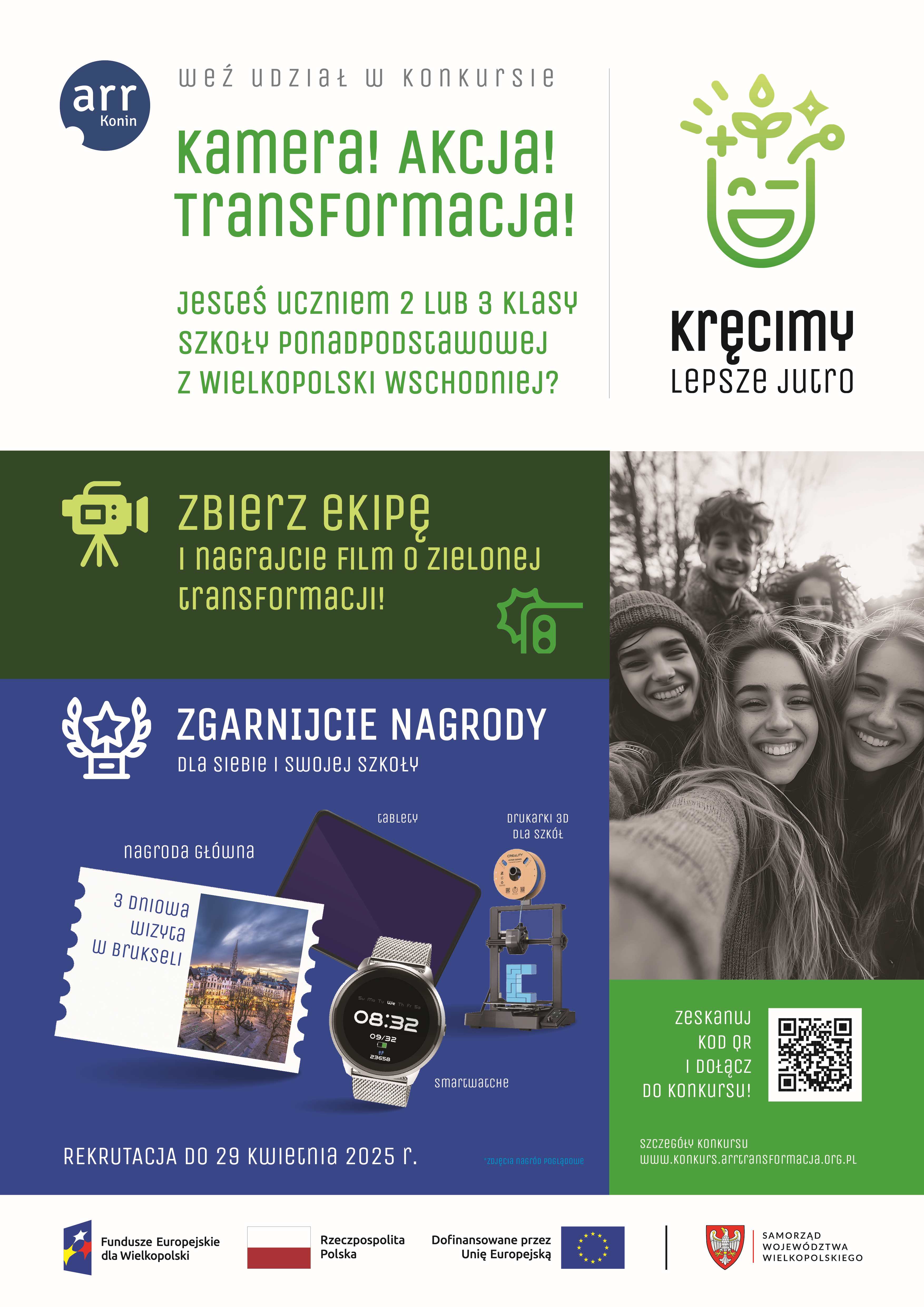Agencja Rozwoju Regionalnego S.A. w Koninie organizuje konkursu pt. „Kamera! Akcja! Transformacja! Kręcimy lepsze jutro”.